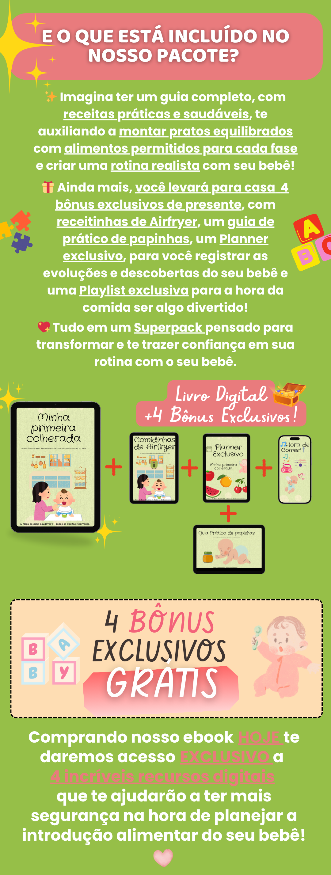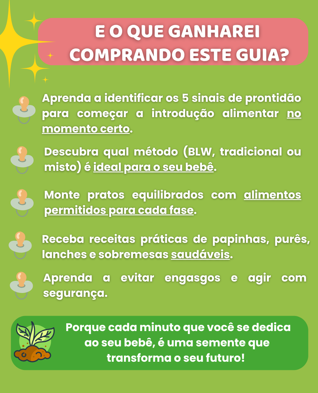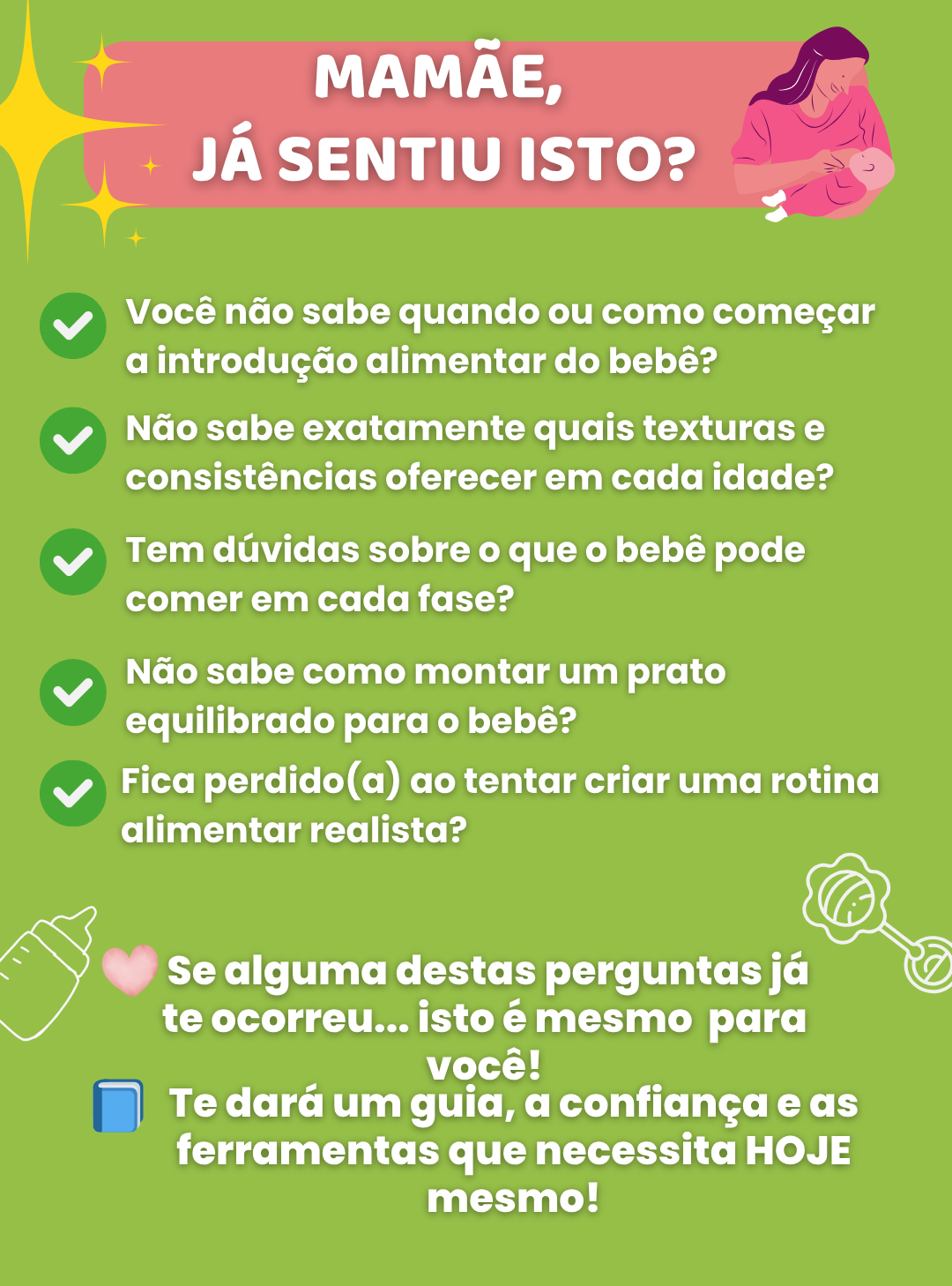 Não perca a chance de ter todas as respostas para a introdução alimentar do seu bebê — sem estresse e com muito carinho! 😍