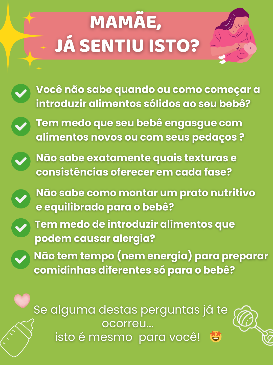Não perca a chance de ter todas as respostas para a introdução alimentar do seu bebê — sem estresse e com muito carinho! 😍