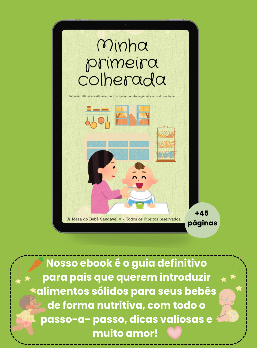 O guia é focado na introdução alimentar, ideal para bebês a partir dos 6 meses.